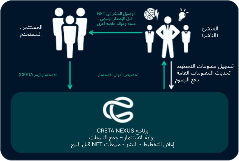 تهدف CRETA NEXUS إلى أن تصبح آلية فعالة لجمع التبرعات لمطوري الألعاب الموهوبين العاملين في نظام CRETA. يتيح لهم الحصول على دعم محبي الألعاب والمستثمرين المحترفين، وتوفير الدعم المالي اللازم لإطلاق ألعاب جديدة وأصلية في السوق. سيتم إنشاء جمع التبرعات للمشاريع التي تتم حضانتها في إطار برنامج CRETA NEXUS، شريطة تحقيق هدف التمويل المحدد خلال فترة التبرع المخصصة. سيتم تنفيذ توفير الأموال بشكل أساسي باستخدام رموز CRETA.